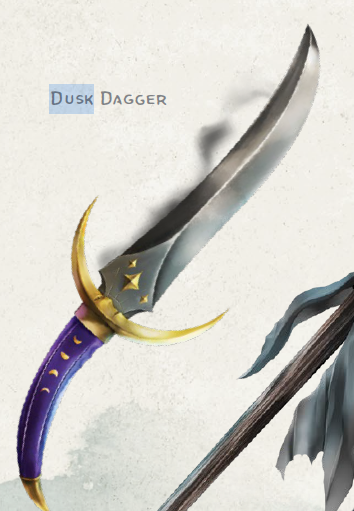 This delicately curved dagger is ornamented with several crescent moon designs. When you hit a creature who is completely in dim light or darkness with this magic weapon, that creature takes an extra 1d8 psychic damage.