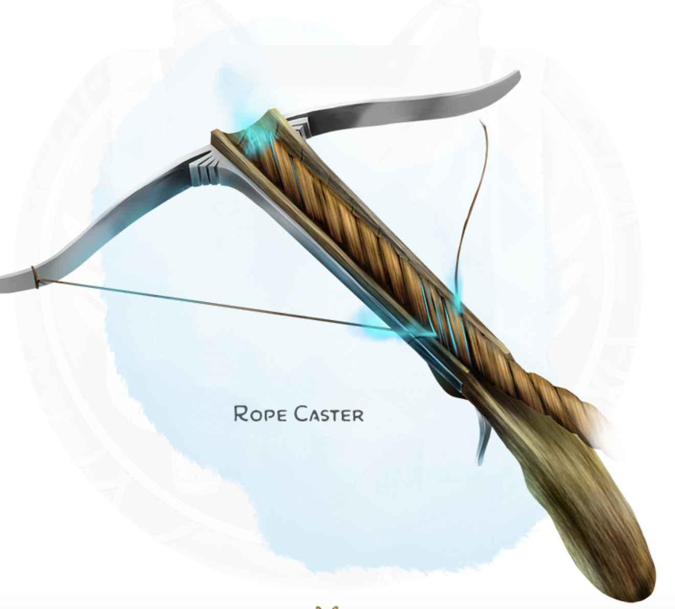 Tags:#magicitem This magic weapon is a favorite among infiltrators. Its firing mechanism has no string, unlike other crossbows. Instead, this weapon can only be loaded with rope. As a bonus action, you can load a length of rope into the crossbow. When you do, individual strands from the rope magically latch onto the weapon’s limbs and pull the mechanism taut. You can make a ranged attack with the crossbow to fire the rope at a willing creature or an object within range that isn’t being worn or carried. If it hits, the target takes no damage from the attack but is bound by the rope. If the rope is long enough, it magically wraps around the target in a single loop and securely ties itself, leaving the remaining rope to hang from the knot. If the target is a willing creature, the rope ties itself around the creature’s chest or waist as a harness but does not restrain them. If the attack hits an unwilling creature, the rope falls harmlessly to the ground without being tied. A creature can use its action to make a DC 10 Strength or Dexterity check, releasing a bound object within its reach on a success