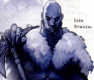 Izek’s parents succumbed to their grief, leaving him an orphan. He became a sociopath. Other children ruthlessly mocked him because of his dead family and his missing arm, but he was a large boy and had no trouble killing them and disposing of their bodies. He was eventually caught in the act and brought to the burgomaster. Instead of punishing the boy for his crimes, Baron Vallakovich pardoned Izek and took him into his home. Izek has been loyal to the burgomaster ever since, enjoying the power of his position and the comforts of his master’s mansion. When he isn’t enforcing the burgomaster’s will, Izek drinks copious amounts of wine.